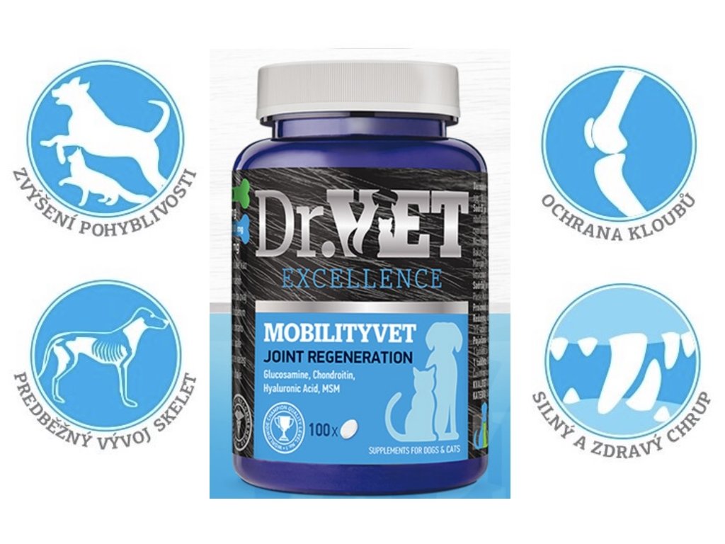 MOBILITYVET je doplněk určený pro všechny kategorie psů a koček. Jeho účelem je posílení vazů, zajištění správného rozvoje kosterního systému, regenerace a ochrana kloubů a chrupavky. Dalším cílem produktu MOBILITYVET je zmírnit bolest způsobenou změnami, ke kterým dochází kvůli poklesu průtoku synoviální tekutiny. Preventivní používání přípravku MOBILITYVET se doporučuje u mladších kategorií psů a koček, aby se zabránilo deformacím kosterního systému, slabým kloubům a měkkým šlachám.