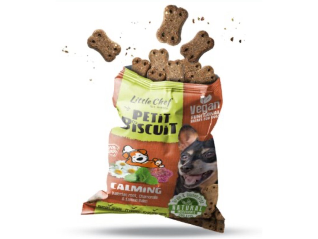 Petit Biscuit jsou funkční pamlsky pečené v malých dávkách z čistě veganských surovin v potravinářské kvalitě. Varianta Calming s kozlíkem lékařským, heřmánkem a meduňkou podporuje nervový systém a přispívá k celkové pohodě a klidu. Jsou skvělou volbou i pro psy, kteří procházejí stresovými situacemi, například při cestování, návštěvě veterináře nebo změně prostředí.