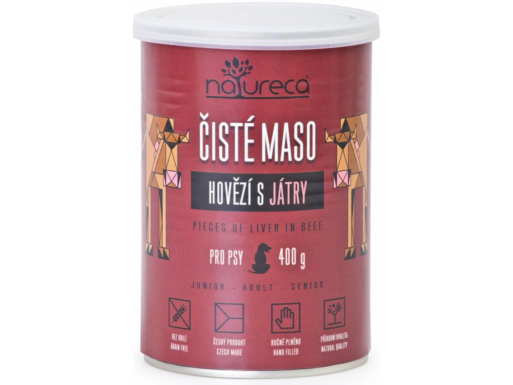 Všechny konzervy Natureca pro psy a kočky jsou přírodní a bez jakýchkoliv barviv, aromat, konzervantů, chemikálií, obilovin nebo sóji.