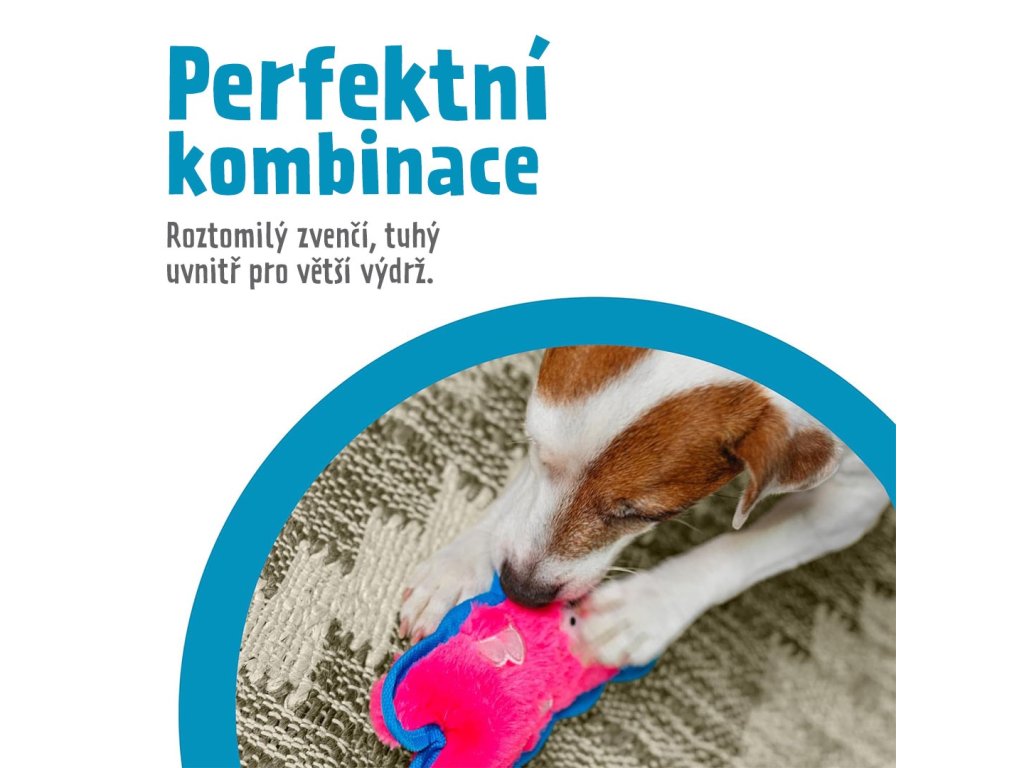 Upozornění: Přestože je tato hračka velmi odolná díky kvalitním materiálům a obšití pevným lemem, není nezničitelná. Hračka není určená k intenzivnímu žvýkání.